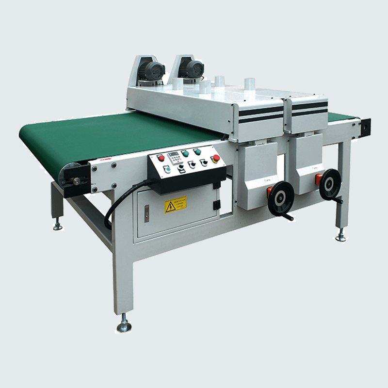 This denibbing machine is a specialized piece of equipment used in automated wood finishing lines. It is used to remove the raised wood fibers that have become embedded in a layer of coating after it has been cured (dried).
